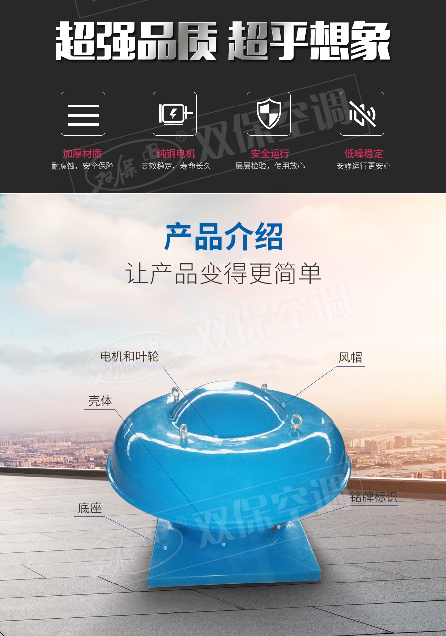 【產(chǎn)品名稱】屋頂風(fēng)機(jī) 【生產(chǎn)廠家】江蘇雙保空調(diào)有限公司