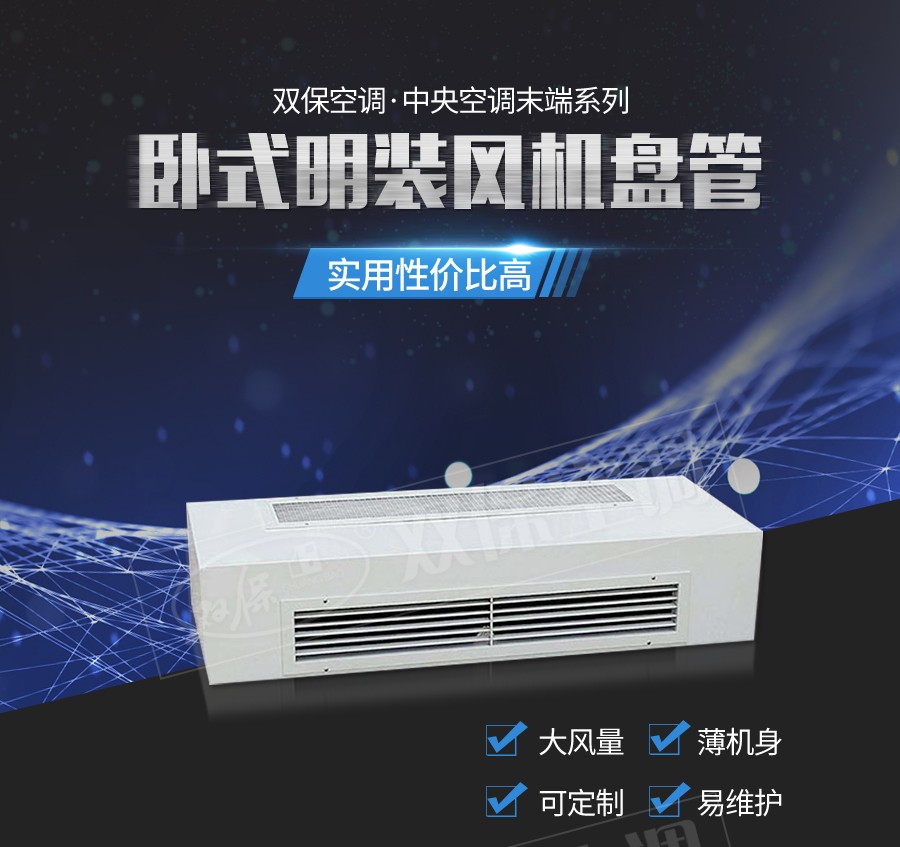 【產品名稱】臥式明裝風機盤管                   【生產廠家】江蘇雙保空調有限公司