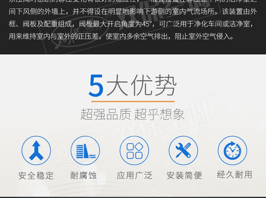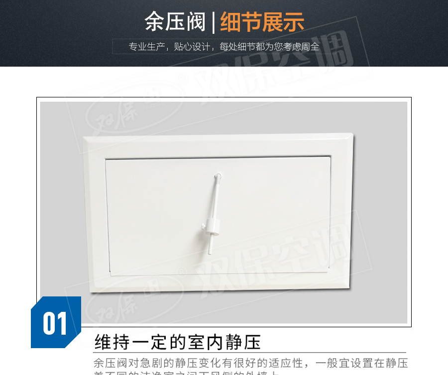 【產品名稱】余壓閥                  【生產廠家】江蘇雙保空調有限公司